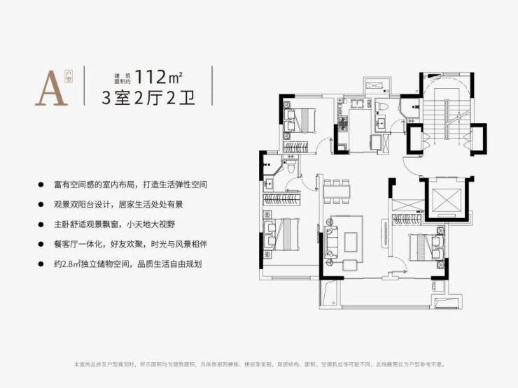 公共部分:选用一梯两户的修建布局规划,电梯对开门的规划,给予了每户一个近4㎡的入户区域
